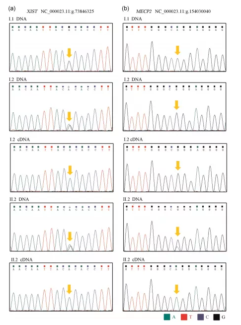 作者的結(jié)果相似,通過結(jié)合RNA-seq和RT-PCR,發(fā)現(xiàn)在非活性X染色體上特異表達(dá)的X-非活性特異轉(zhuǎn)錄物XIST僅在I.2和II.2的Xq28重復(fù)染色體上表達(dá)。這表明Xq28重復(fù)染色體是不活躍的。另外還發(fā)現(xiàn),兩個(gè)女性的Xq28重復(fù)等位基因上的MECP2和IRAK1(受XCI影響的基因)沒有轉(zhuǎn)錄表達(dá)。這解釋了為什么這兩名女性,特別是I.2,是無癥狀攜帶者。同時(shí),作者推測(cè),除了DNA甲基化之外,其他因素也在維持XCI狀態(tài),一種額外的抑制機(jī)制可能發(fā)生在非甲基化X染色體的轉(zhuǎn)錄水平,以抵消MECP2復(fù)制的有害表型效應(yīng)。根據(jù)XCI,作者的發(fā)現(xiàn)為MECP2重復(fù)綜合征知識(shí)及其在女性中的表型后果增加了新的見解,這對(duì)遺傳和產(chǎn)前咨詢具有重要意義。