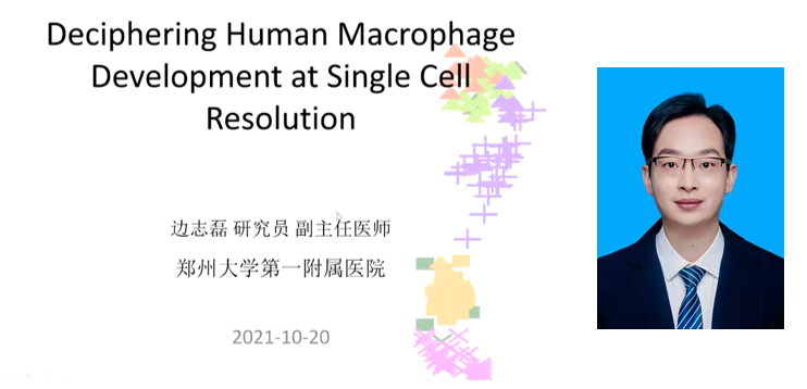 前面兩場(chǎng)報(bào)告湯老師和曹老師都是開發(fā)了單細(xì)胞空間新技術(shù),這些技術(shù)如何實(shí)現(xiàn)在臨床醫(yī)學(xué),特別是在腫瘤中精準(zhǔn)輔助治療應(yīng)用呢?鄭州大學(xué)第一附屬醫(yī)院血液科副主任醫(yī)師邊志磊研究員報(bào)告題目是:Deciphering human macrophage development at single-cell resolution,以超高單細(xì)胞分辨率深度解析了巨噬細(xì)胞發(fā)育。邊老師團(tuán)隊(duì)繪制了巨噬細(xì)胞在多個(gè)解剖部位的異質(zhì)性,并確定了不同的亞群,包括各種類型的胚胎組織駐留巨噬細(xì)胞(TRMs)(在頭部、肝臟、肺和皮膚)。追蹤了胚胎卵黃囊來源的原始巨噬細(xì)胞或卵黃囊衍生的偏髓性祖細(xì)胞(YSMPs)來源的胚胎肝單核細(xì)胞中TRM的發(fā)育軌跡,評(píng)估了胚胎期TRM和成年期TRM之間的分子相似性。全面描述了人類胚胎發(fā)生過程中早期巨噬細(xì)胞發(fā)育的時(shí)空動(dòng)態(tài)特征,為進(jìn)一步研究人類TRM的發(fā)育和功能提供了參考。