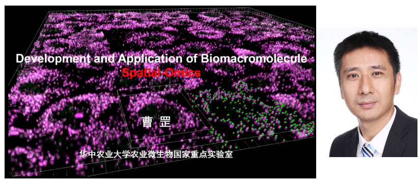 聆聽完湯老師的報(bào)告是不是意猶未盡,接下來第二位出場(chǎng)報(bào)告嘉賓是華中農(nóng)業(yè)大學(xué)楚天學(xué)者特聘教授,曹罡教授,曹老師的報(bào)告題目是:Development and Application of Single cell Biomacromolecule Spatail-Omics。。曹老師團(tuán)隊(duì)開發(fā)了一系列的單細(xì)胞生物大分子原位組學(xué)檢測(cè)新技術(shù),包括(單細(xì)胞)三維基因組學(xué)、單細(xì)胞原位測(cè)序技術(shù)、新型中低通量單分子FISH技術(shù)、蛋白互作網(wǎng)絡(luò)及其高通量空間定位技術(shù)和結(jié)合神經(jīng)環(huán)路的單細(xì)胞測(cè)序技術(shù)。同時(shí),并將這些技術(shù)運(yùn)用到神經(jīng)免疫學(xué)與病原感染、腫瘤等疾病的發(fā)生發(fā)展及其檢測(cè)研究中,極大的拓展了單細(xì)胞生物大分子空間組學(xué)的發(fā)展與應(yīng)用。