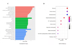 已有研究報(bào)道可變剪接(AS)參與心肌缺血的發(fā)生發(fā)展。作者在每組中發(fā)現(xiàn)了大量的AS。在所有RNA-seq檢測(cè)的樣本中,共發(fā)現(xiàn)與1994個(gè)基因相關(guān)的8237個(gè)AS事件。并對(duì)不同類型的可變剪接時(shí)間進(jìn)行了統(tǒng)計(jì),結(jié)果表明,一個(gè)基因可能發(fā)生多種類型的mRNA剪接事件;部分基因可能有3種AS類型表達(dá),半數(shù)以上的AS事件是ES類型的事件。差異表達(dá)基因和AS事件相關(guān)基因分析結(jié)果顯示許多差異基因經(jīng)歷了AS事件,表明許多基因可能在MI的病理過(guò)程和針刺選擇性剪接治療中發(fā)揮作用。KEGG富集分析結(jié)果發(fā)現(xiàn)AS相關(guān)基因主要富集在線粒體組織、蛋白酶體蛋白分解代謝過(guò)程、RNA剪接、通過(guò)剪接體剪接mRNA以及代謝過(guò)程等途徑。