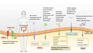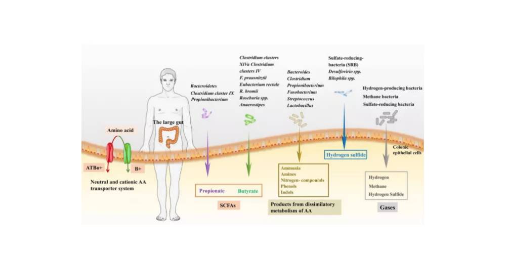 氨基酸(Amino Acids,AAs)是人體必需的物質(zhì),它不僅是蛋白質(zhì)合成的原材料,還可以參與微生物代謝。人體獲取氨基酸不僅可以通過(guò)腸道吸收,還可以由微生物代謝產(chǎn)生。不僅如此,氨基酸組成和豐度的變化可影響代謝細(xì)菌群落,并通過(guò)TLR受體、NLR受體等調(diào)節(jié)巨噬細(xì)胞和樹(shù)突狀細(xì)胞,還可通過(guò)AhR受體、5-HT調(diào)節(jié)腸道微生物免疫軸,以及其他信號(hào)通路,所有這些通路在直接或間接調(diào)節(jié)腸粘膜免疫和微生物群方面起著關(guān)鍵作用,有助于腸道內(nèi)環(huán)境平衡。[1]