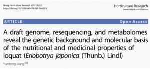 主要內(nèi)容:通過PacBio測序平臺完成733.32 Mb“大五星”枇杷基因組的構(gòu)建,并對52個枇杷品種(包括16個白肉變種和36個黃肉變種)進行重測序分析,同時,使用UPLC-ESI-MS/M系統(tǒng)測定了的花、葉和根代謝組。通過GWAS分析鑒定了一些與枇杷的果肉顏色關(guān)聯(lián)的SNPs。