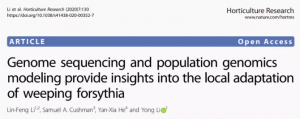 主要內(nèi)容:該研究以藥用作物連翹為研究對象,通過Nanopore平臺測序數(shù)據(jù)組裝了737.47 Mb的高質(zhì)量連翹基因組。并對15個連翹自然種群進行全基因組比較分析,找到了與本地適應(yīng)相關(guān)的太陽輻射、溫度和降雨等變量相關(guān)候選基因。該研究為連翹從野生種群篩選優(yōu)良種質(zhì)資源提供了遺傳資源和理論參考。