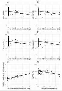 接下來(lái)對(duì)33個(gè)樣本進(jìn)行宏基因組分析,進(jìn)一步描述了微生物組的特征。分析表明腸桿菌科的未知屬與阿氏腸桿菌關(guān)系最密切(圖2E),也與陰溝腸桿菌和居中克呂沃爾氏菌相關(guān)。其中陰溝腸桿菌與WPPSI-III FIQ顯著相關(guān),同時(shí)陰溝腸桿菌和居中克呂沃爾氏菌相關(guān)。其中陰溝腸桿菌與WPPSI-III FIQ顯著相關(guān),同時(shí)陰溝腸桿菌和阿氏腸桿菌腸桿菌與WPPSI-III PIQ相關(guān)。