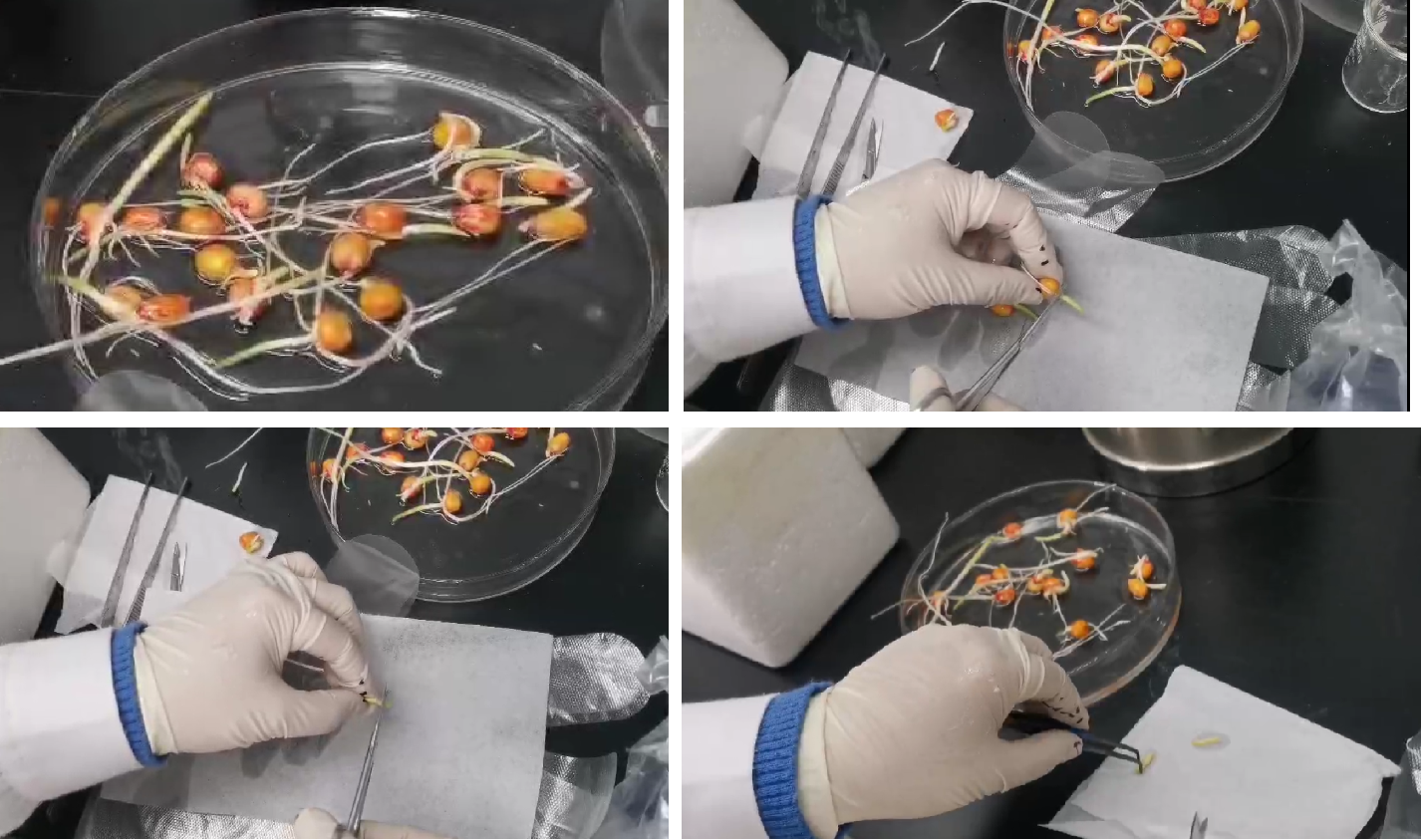 :本方法推薦蒸餾水作為植物組織表面清洗緩沖液,不建議直接用1xPBS作為植物組織表面清洗緩沖液,為了維持組織形態(tài)結(jié)構(gòu)原始穩(wěn)定性,高濃度PBS會導(dǎo)致植物組織細(xì)胞容易收縮變形,選擇蒸餾水可以簡單快速清洗干凈表面污漬。如果采用蔗糖溶液作為冷凍保護(hù)液,可以采取相應(yīng)濃度蔗糖(1x PBS配置)做為植物清洗緩沖液。
