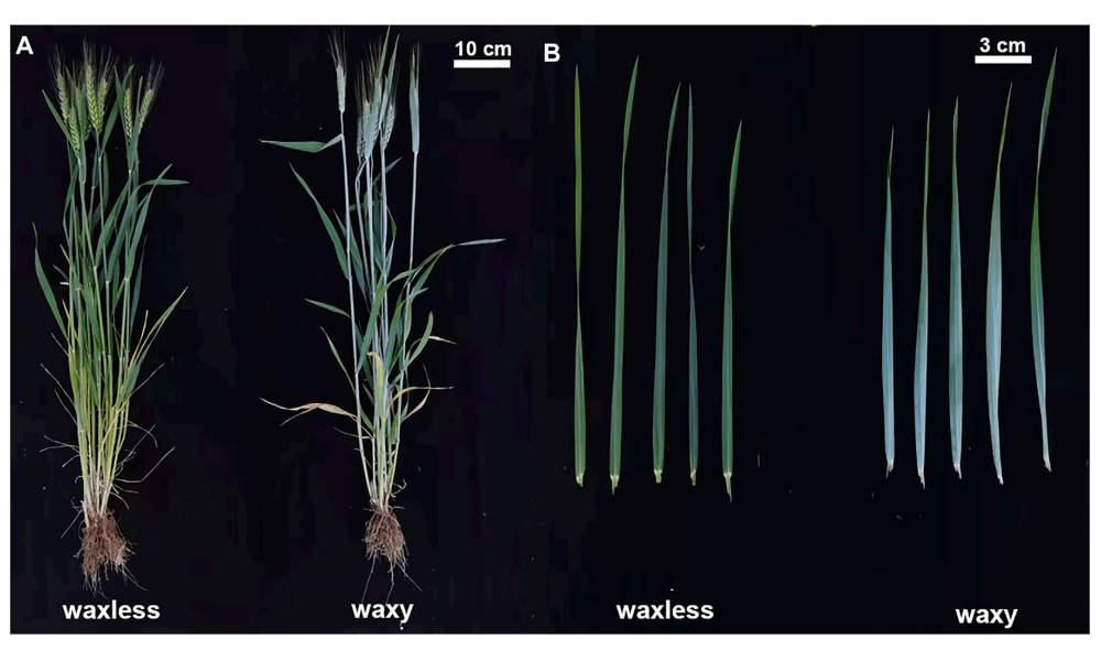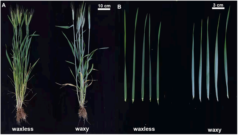 材料:EMS誘變22號高產(chǎn)品種冀麥,分離出蠟質(zhì)(waxy)和無蠟質(zhì)突變體(waxyless),種植至抽穗期取葉片組織。