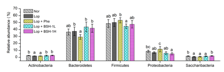 BSH-1是一種從竹屑中提取的O-乙酰化木聚糖。該研究測定了BSH-1對洛哌丁胺(Lop)誘導(dǎo)的小鼠便秘的保護(hù)作用。小鼠每日灌胃BSH-1,連續(xù)14天。在便秘小鼠中,BSH-1顯著縮短排便時間,提高胃腸(GI)通過率、糞便產(chǎn)量和盲腸短鏈脂肪酸(SCFAs)濃度。BSH-1調(diào)節(jié)血清胃腸激素和神經(jīng)遞質(zhì)水平。BSH-1還顯著改變了便秘小鼠的盲腸菌群,增加了潛在有益細(xì)菌(如 Lactobacillus, Roseburia和 Bacteroidales_S24–7)的豐度,減少了潛在致病菌(如Alloprevotella和Staphylococcus)。此外,結(jié)腸轉(zhuǎn)錄組分析表明,BSH-1顯著逆轉(zhuǎn)了便秘小鼠腸道運(yùn)動、水和離子轉(zhuǎn)運(yùn)、炎癥和癌癥相關(guān)基因的表達(dá)變化。結(jié)果表明,BSH-1能有效緩解LOP誘導(dǎo)的小鼠便秘,有可能用于便秘的治療。