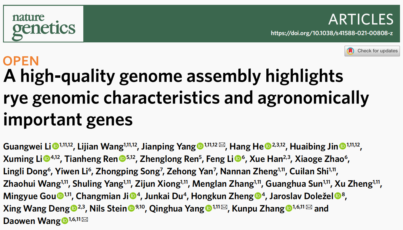 本研究對我國栽培的優(yōu)良品種威寧黑麥進(jìn)行了基因組測序,基因組組裝大小為7.74 Gb,其中93.67%被掛載到7條染色體上,重復(fù)序列占總基因組的90.31%。并基于高質(zhì)量基因組揭示了全基因組基因復(fù)制及其對淀粉生物合成基因的影響,解析了復(fù)雜儲存蛋白基因座位點(diǎn)、早抽穗性狀的基因表達(dá)特征以及黑麥中與馴化相關(guān)的染色體區(qū)域和基因座。本次研究結(jié)果對黑麥的基因組特性及其農(nóng)藝性狀調(diào)控基因有了新的認(rèn)識,獲得了對進(jìn)一步研究黑麥馴化遺傳基礎(chǔ)可能有用的染色體區(qū)域和基因座。威寧黑麥基因組組裝對于破解黑麥基因組生物學(xué),深化比較谷類基因組學(xué)研究,加速黑麥及相關(guān)谷類作物的遺傳改良具有重要價值。