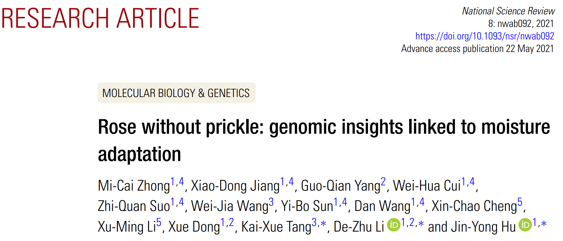 以中國古老月季‘無刺光葉薔薇’(R. wichuraiana‘Basye’s Thornless’,BT)和‘月月粉’(R. chinensis‘Old Blush’,OB)及其雜交F1和回交BC1F1世代遺傳群體等為試材,團(tuán)隊(duì)構(gòu)建了二倍體BT染色體水平高量參考基因組。該基因組大小約為530.6 Mb;遺傳圖比對、BUSCO分析、二代reads回貼、與單倍體OB基因組比較、單堿基水平正確率分析和LTR組裝指數(shù)(LAI=20.03)等方法均確認(rèn)了BT基因組的高準(zhǔn)確性。綜合利用比較基因組學(xué)、分子遺傳學(xué)和演化生物學(xué)等方法手段解析了月季皮刺遺傳調(diào)控機(jī)制,系統(tǒng)研究了無刺BT和有刺OB間的重要遺傳分化,探究了月季皮刺遺傳調(diào)控機(jī)制,揭示了基因表達(dá)變異可能是皮刺表型分化的基礎(chǔ),提出了皮刺發(fā)育早期的生理學(xué)功能假設(shè),構(gòu)建了重要遺傳和基因組資源。