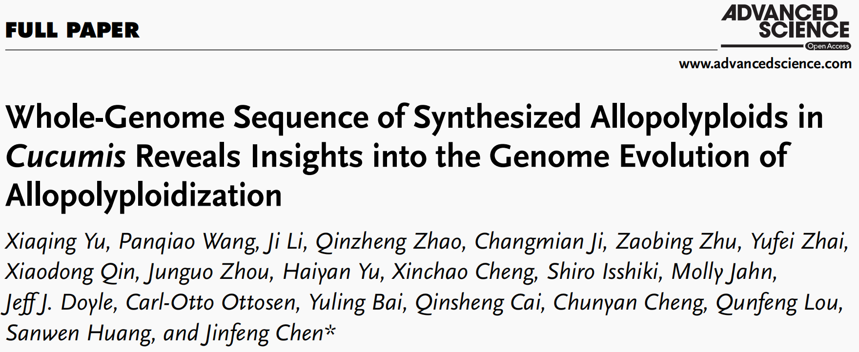 研究團(tuán)隊(duì)將栽培黃瓜(Cucumis sativus L., 2n=14)與野生酸黃瓜(C. hystrix Chakr., 2n=24)進(jìn)行種間雜交,通過胚胎拯救和染色體加倍,創(chuàng)造了甜瓜屬人工異源四倍體新物種“金瓜”。本研究利用PacBio+BioNano+Hi-C+Illumina等技術(shù)完成了“金瓜”的染色體水平基因組組裝,共組裝獲得530.8 Mb基因組(contig N50=6.5 Mb)將組裝的基因組序列掛載至19條假染色體上,并對其亞基因組進(jìn)行了√確區(qū)分。揭示并初步闡明了在異源多倍化物種形成三個階段中,種間雜交的作用顯著,以及亞基因組優(yōu)勢形成機(jī)制。金瓜不僅表現(xiàn)出明顯的雜種優(yōu)勢,同時還具有很強(qiáng)的環(huán)境適應(yīng)性,是利用多倍體化開發(fā)作物新品種的真實(shí)范例。本研究對于加強(qiáng)植物多倍化研究及作物育種利用具有重要意義。