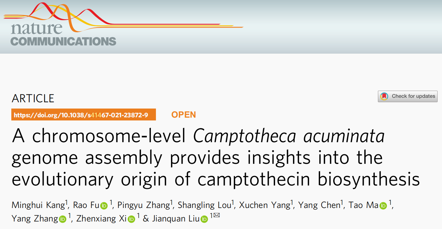本研究通過PacBio和HiC技術(shù)組裝注釋了高質(zhì)量染色體級別的喜樹基因組,最終組裝大小414.95 Mb,contigN50=1.47 Mb。比較基因組等研究發(fā)現(xiàn),喜樹堿經(jīng)歷了一個獨(dú)立的全基因組復(fù)制,從中衍生出的許多基因與喜樹堿的生物合成有關(guān)。LAMT基因的功能分化和兩個SLAS基因的正向進(jìn)化都對喜樹堿在喜樹中的生物合成有很大貢獻(xiàn)。該研究揭示了喜樹中喜樹堿生物合成通路可能的分子進(jìn)化機(jī)制,發(fā)現(xiàn)高質(zhì)量基因組組裝在識別新次級代謝物進(jìn)化起源中的遺傳變化具有十分關(guān)鍵的作用。