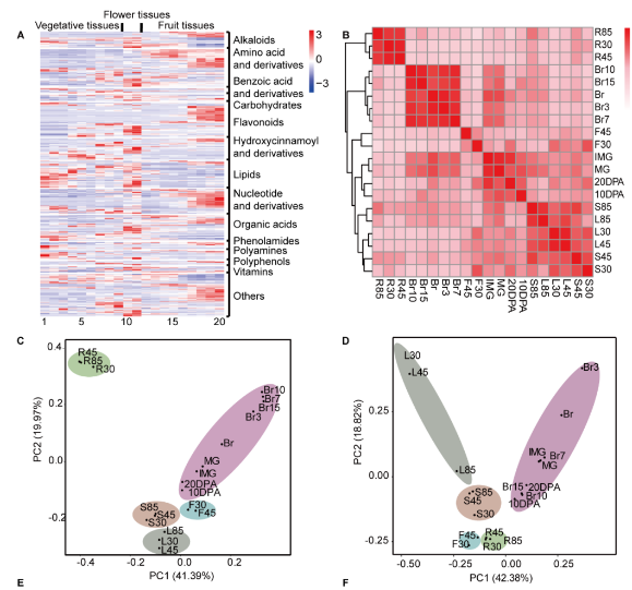 利用番茄代謝組和轉(zhuǎn)錄組數(shù)據(jù)集,通過整合番茄20個(gè)組織和發(fā)育時(shí)期的代謝組和轉(zhuǎn)錄組數(shù)據(jù),繪制了番茄整個(gè)生長發(fā)育過程中主要代謝變化的整體圖譜,同時(shí)還發(fā)現(xiàn)調(diào)節(jié)重要次級代謝產(chǎn)物(類黃酮和甾體類生物堿)合成的關(guān)鍵調(diào)控因子,為深入解析番茄主要代謝物的轉(zhuǎn)錄調(diào)控網(wǎng)絡(luò)奠定了基礎(chǔ),并為模式和非模式植物代謝調(diào)控的深入研究提供了新思路。