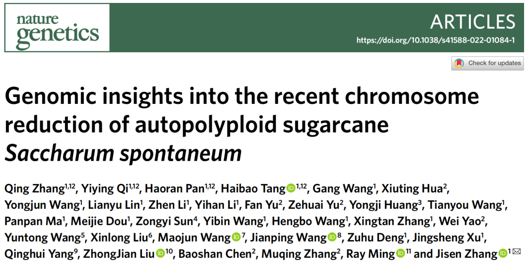 福建農(nóng)林大學(xué)海峽聯(lián)合研究院基因組中心張積森課題組博士生張清(目前中國(guó)農(nóng)科院深圳農(nóng)業(yè)基因組研究所工作)、齊浥穎、碩士生潘浩然和基因組中心唐海寶教授為論文共同第一作者,基因組中心張積森教授為通訊作者。張積森教授團(tuán)隊(duì)長(zhǎng)期從事以甘蔗基因組學(xué)與分子育種研究,該成果是基因組中心團(tuán)隊(duì)在甘蔗領(lǐng)域發(fā)表的第2篇Nature Genetics論文,作為近60年以來(lái)發(fā)表研究刊物高的甘蔗論文,該研究將進(jìn)一步奠定我國(guó)在甘蔗基礎(chǔ)研究領(lǐng)域的學(xué)術(shù)地位。