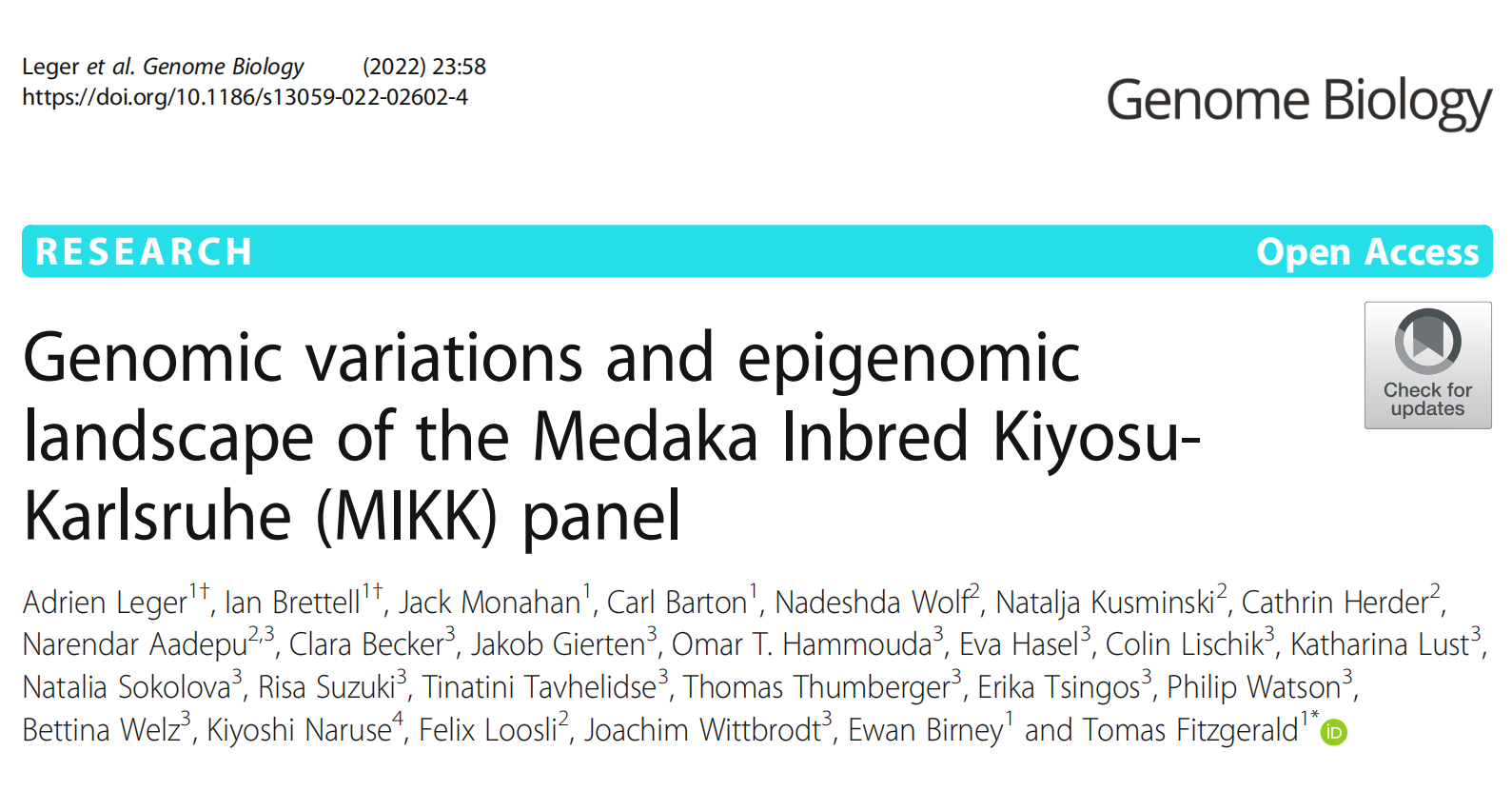 在與這篇文章一起發(fā)表的配套文章中,我們根據(jù)Illumina短讀序列與最近、完全組裝的參考基因組(日本南部medaka自交系HdrR)的比對(duì),提供了80個(gè)個(gè)體MIKK面板系[4]的詳細(xì)遺傳特征。