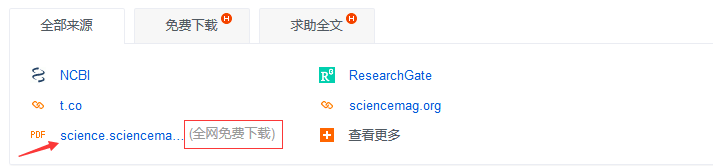 打開http://xueshu.baidu.com/,輸入文獻(xiàn)題目,回車,則出現(xiàn)文獻(xiàn)的詳細(xì)信息頁(yè)面,下拉會(huì)看到全部來(lái)源,點(diǎn)擊后面帶“全網(wǎng)免費(fèi)下載”字樣的,跳轉(zhuǎn)至PDF下載界面,輕松獲得文獻(xiàn)。但是,多數(shù)情況下百度學(xué)術(shù)里面沒有免費(fèi)的PDF下載資源,這時(shí)仍推薦sic-hub。