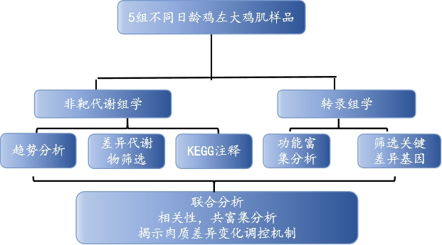 Integration analysis of metabolome and transcriptome profiles revealed the?age-dependent dynamic change in chicken meat.Food Research International (IF=6.475) 2022年6月代謝組和轉(zhuǎn)錄組的整合分析揭示不同生長(zhǎng)發(fā)育時(shí)期雞的肉質(zhì)依賴(lài)性動(dòng)態(tài)變化研究方案