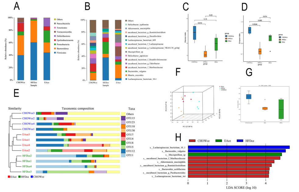 3、EA 恢復(fù)了空腸和盲腸中失調(diào)的微生物菌群