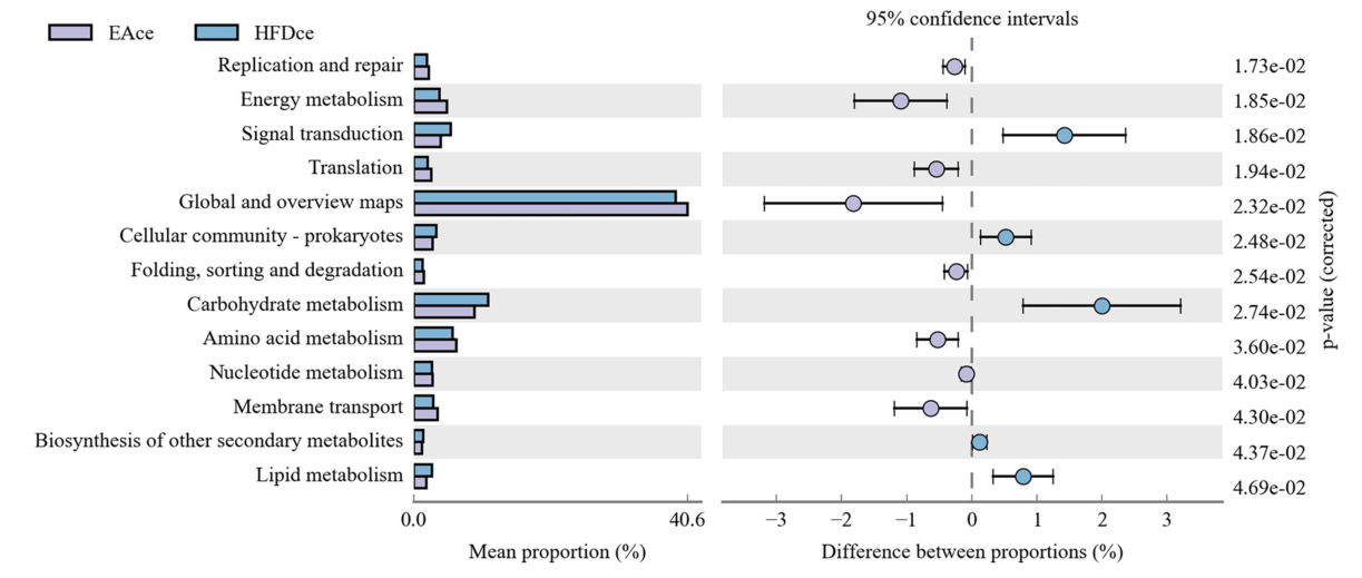圖5 HFD組和EA組功能基因組成的功能預(yù)測(cè)