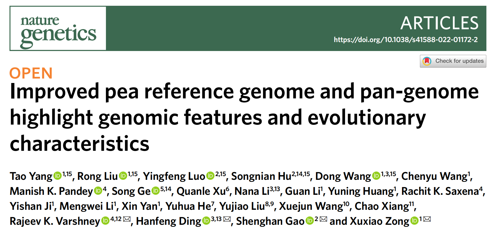 研究?jī)?nèi)容:基于PacBio等技術(shù)構(gòu)建了中國(guó)豌豆主栽品種“中豌6號(hào)”的高質(zhì)量基因組(3.8 Gb)。通過(guò)118 個(gè)栽培和野生豌豆種質(zhì)群體分析,解決了豌豆屬物種劃分的爭(zhēng)議。QTL分析鑒定出與粒型、株高等相關(guān)的候選基因。隨后構(gòu)建了栽培和野生豌豆種質(zhì)的泛基因組,發(fā)現(xiàn)大部分泛基因組多樣性主要存在于不同物種和遺傳分組之間,近緣野生種和地方種表現(xiàn)出豌豆育種資源的重要潛力。該研究為豌豆起源馴化、基因挖掘、種質(zhì)創(chuàng)新和育種改良提供了寶貴資源。