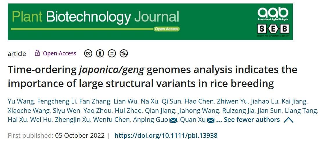 研究?jī)?nèi)容:基于Nanopore平臺(tái)構(gòu)建了12個(gè)高質(zhì)量水稻基因組(contigN50 8.77-15.84Mb)。通過(guò)全基因組比對(duì)分析找尋大量的結(jié)構(gòu)變異(SVs),發(fā)現(xiàn)SV相關(guān)基因可能在葉綠體膜系統(tǒng)中發(fā)揮重要作用,顯性LTG1的水稻品種比具有其他類型等位基因的水稻品種更耐低溫,說(shuō)明LTG1在調(diào)節(jié)水稻耐寒性中起著關(guān)鍵作用。豐富的基因CNVs是水稻遺傳多樣性的一個(gè)重要特征,研究發(fā)現(xiàn)GNP1的拷貝數(shù)變異(CNVs)可能與水稻粒數(shù)相關(guān)。本研究為擴(kuò)寬粳型栽培稻的遺傳多樣性、進(jìn)一步提升育種潛力提供遺傳基礎(chǔ)。