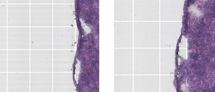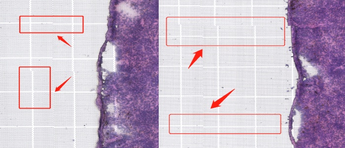 隨著百創(chuàng)智造亞細(xì)胞級(jí)空間轉(zhuǎn)錄組芯片BMKMANU S1000的發(fā)布,空間組學(xué)的分辨率由傳統(tǒng)的100μm提高到了亞細(xì)胞級(jí)別的4.8μm,組織切片上更多的生物學(xué)信息得以被挖掘。在不斷地測(cè)試過(guò)程中我們發(fā)現(xiàn)了圖像處理上的一大問(wèn)題-空間轉(zhuǎn)錄組圖像拼接錯(cuò)誤。