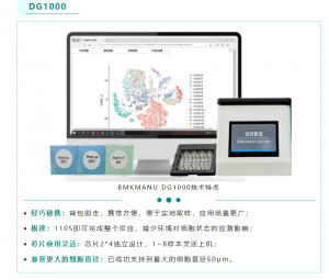 最后,制備合格的單細(xì)胞懸浮液/原生質(zhì)體/細(xì)胞核樣本,可以直接通過百創(chuàng)DG1000單細(xì)胞微液滴系統(tǒng),實(shí)現(xiàn)高通量的單細(xì)胞精準(zhǔn)捕獲。百創(chuàng)DG1000是基于微流控、油滴包裹和Barcode標(biāo)記等技術(shù)來實(shí)現(xiàn)高通量的細(xì)胞捕獲。除了儀器以外,百創(chuàng)DG1000還有配套的2×4的獨(dú)立芯片及配套試劑盒。