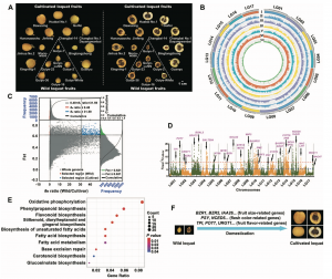 野生枇杷為改良品種的馴化和育種研究提供了豐富的遺傳資源。作者組裝出野生枇杷染色體水平的基因組,比較基因組研究表明枇杷與蘋果和梨擁有一個(gè)共同的祖先,且在枇杷分化之前就發(fā)生了一次WGD事件?;蚪M重測(cè)序結(jié)果表明,野生枇杷較栽培枇杷具有較高的遺傳多樣性,果實(shí)質(zhì)量、大小和葉片顏色相關(guān)性狀基因在馴化過程中受到了選擇。進(jìn)一步通過轉(zhuǎn)錄組和代謝組分析鑒定到野生和栽培枇杷在果實(shí)發(fā)育不同階段的DEGs和DAMs,關(guān)鍵差異基因和代謝物主要涉及糖代謝、植物激素信號(hào)轉(zhuǎn)導(dǎo)、類黃酮和類胡蘿卜素生物合成。這些高質(zhì)量的參考基因組、重測(cè)序、轉(zhuǎn)錄組和代謝組分析為闡明枇杷的果實(shí)馴化和分子育種研究提供了有利保障。