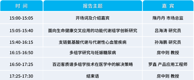 2023年3月22日中國生物物理學(xué)會(huì)腸道菌群分會(huì)房中則副秘書長牽頭與百邁客生物聯(lián)合舉辦“?質(zhì)譜技術(shù)與多組學(xué)前沿應(yīng)用線上研討會(huì)”。本次研討會(huì)由百邁客醫(yī)學(xué)市場總監(jiān)隋丹丹主持,邀請(qǐng)了上海交通大學(xué)系統(tǒng)生物醫(yī)學(xué)研究院呂海濤研究員,天津醫(yī)科大學(xué)孫海鵬研究員,天津醫(yī)科大學(xué)房中則教授,共同探討質(zhì)譜多組學(xué)技術(shù)在疾病研究中應(yīng)用。