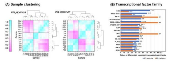 冬季休眠是植物應(yīng)對(duì)潛在致命環(huán)境的最關(guān)鍵策略。近幾十年來(lái),由于氣候的變化,在經(jīng)濟(jì)上具有重要意義的多年生雙子葉植物中的這一過(guò)程得到了廣泛的研究。然而,在不需要冷卻的常綠單子葉植物中,休眠過(guò)程至今仍是一個(gè)謎。因此,揭示這些單子葉植物越冬休眠的調(diào)控機(jī)制,不僅有助于更好地開(kāi)發(fā)利用植物資源,而且對(duì)應(yīng)對(duì)全球變暖帶來(lái)的低溫不足的挑戰(zhàn)具有重要意義。通過(guò)多年物候觀測(cè)發(fā)現(xiàn),鳶尾和蝴蝶花越冬休眠過(guò)程均僅有生態(tài)休眠,將休眠植株移至適宜條件下能迅速恢復(fù)生長(zhǎng),且在同一栽培地區(qū)二者越冬休眠期存在明顯差異,是研究多年生單子葉植物越冬休眠機(jī)理的理想材料。本研究比較了鳶尾(I.tectorum)和蝴蝶花(I.japonica)在關(guān)鍵發(fā)育時(shí)間點(diǎn)的休眠過(guò)程。這兩種鳶尾都表現(xiàn)出短暫的休眠過(guò)程,且持續(xù)時(shí)間不同,在溫暖條件下都能很容易地恢復(fù)生長(zhǎng)。為了破譯轉(zhuǎn)錄變化,作者對(duì)鳶尾進(jìn)行了全長(zhǎng)測(cè)序,對(duì)蝴蝶花進(jìn)行了RNA-seq測(cè)序,分別生成參考轉(zhuǎn)錄組,揭示了調(diào)控常綠與落葉類(lèi)鳶尾越冬休眠的分子機(jī)制。