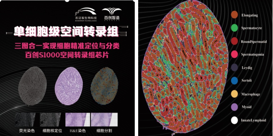會上,百邁客生物旗下百創(chuàng)智造攜亞細胞級空間組學芯片BMKMANU S1000(百創(chuàng)S1000)細胞分割空間組學策略亮相大會,百創(chuàng)S1000空間轉(zhuǎn)錄組芯片作為高分辨率空間組學中一個可以同時實現(xiàn)原片熒光染色+HE染色+原位捕獲測序的技術(shù)受到了了各位與會專家的關(guān)注。