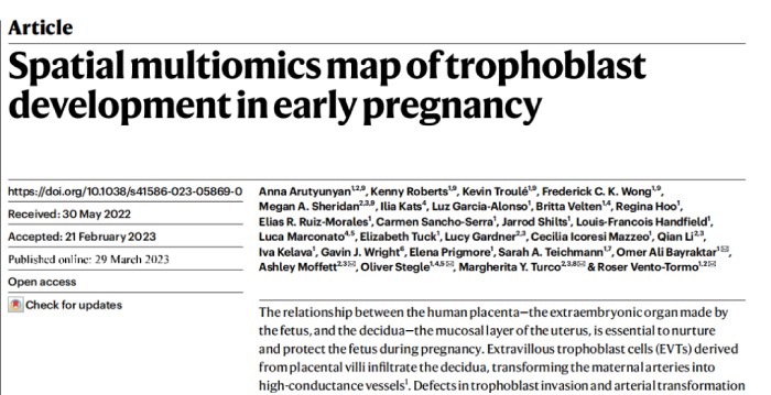 文章題目:Spatial multiomics map of trophoblast development in early pregnancy
