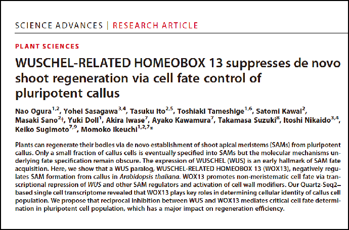 WOX13控制擬南芥愈傷組織細(xì)胞命運(yùn)來抑制新生芽再生