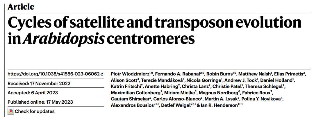 隨著PacBio和ONT長讀長測序技術的發(fā)展,T2T基因組的組裝,使得復雜的著絲粒組裝及研究成為可能。作者通過對66個Arabidopsis thaliana種質和2個Arabidopsis lyrata種質的346個著絲粒序列分析,揭示了其在種內種間的多樣性,同時衛(wèi)星序列同質化介導轉座子入侵和清除的快速周期循環(huán),對推動著絲粒進化及物種形成具有重要意義。