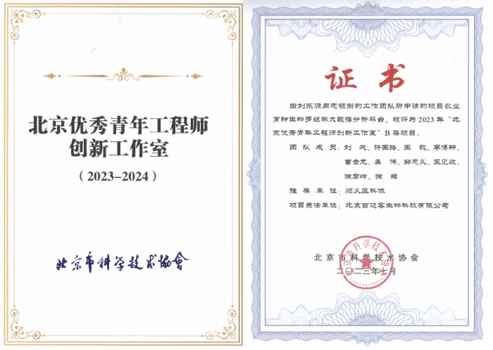 近日,百邁客青年工程師劉東源作為第二十四屆“北京優(yōu)秀青年工程師”稱號的獲得者,代表公司申報“農(nóng)業(yè)育種生物多組學(xué)大數(shù)據(jù)分析平臺”項(xiàng)目,成功入選北京市科協(xié)認(rèn)定的2023年“北京優(yōu)秀青年工程師創(chuàng)新工作室”(以下簡稱“青創(chuàng)室”)。