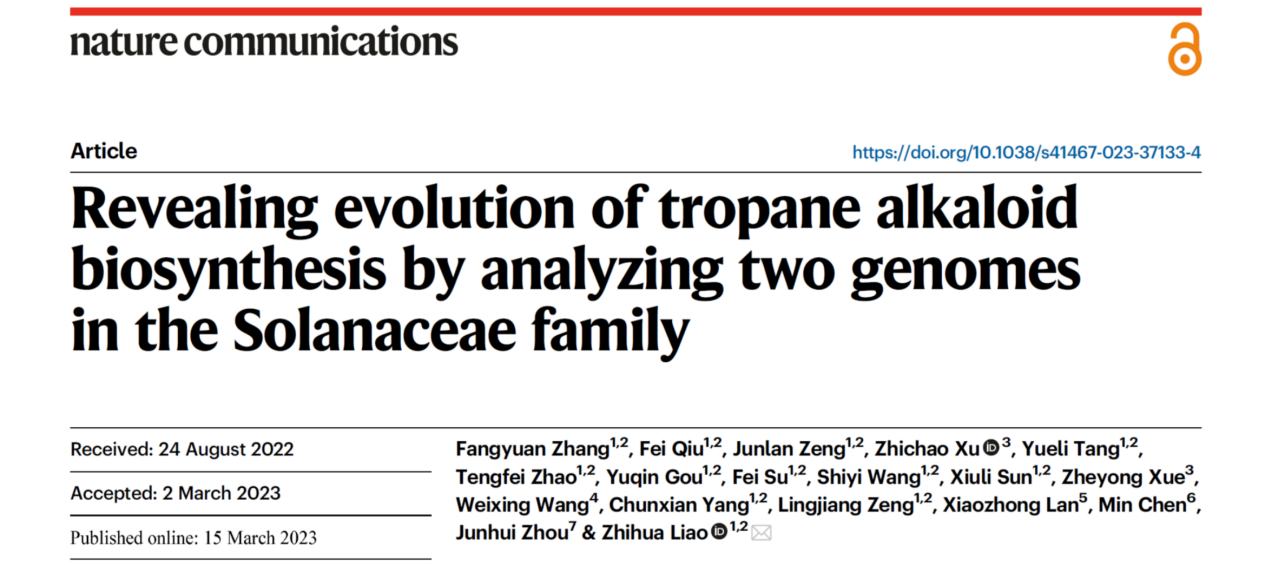 Zhang F,Qiu F,Zeng J,et al.Revealing evolution of tropane alkaloid biosynthesis by analyzing twogenomes in the Solanaceae family.Nature Communications.2023.