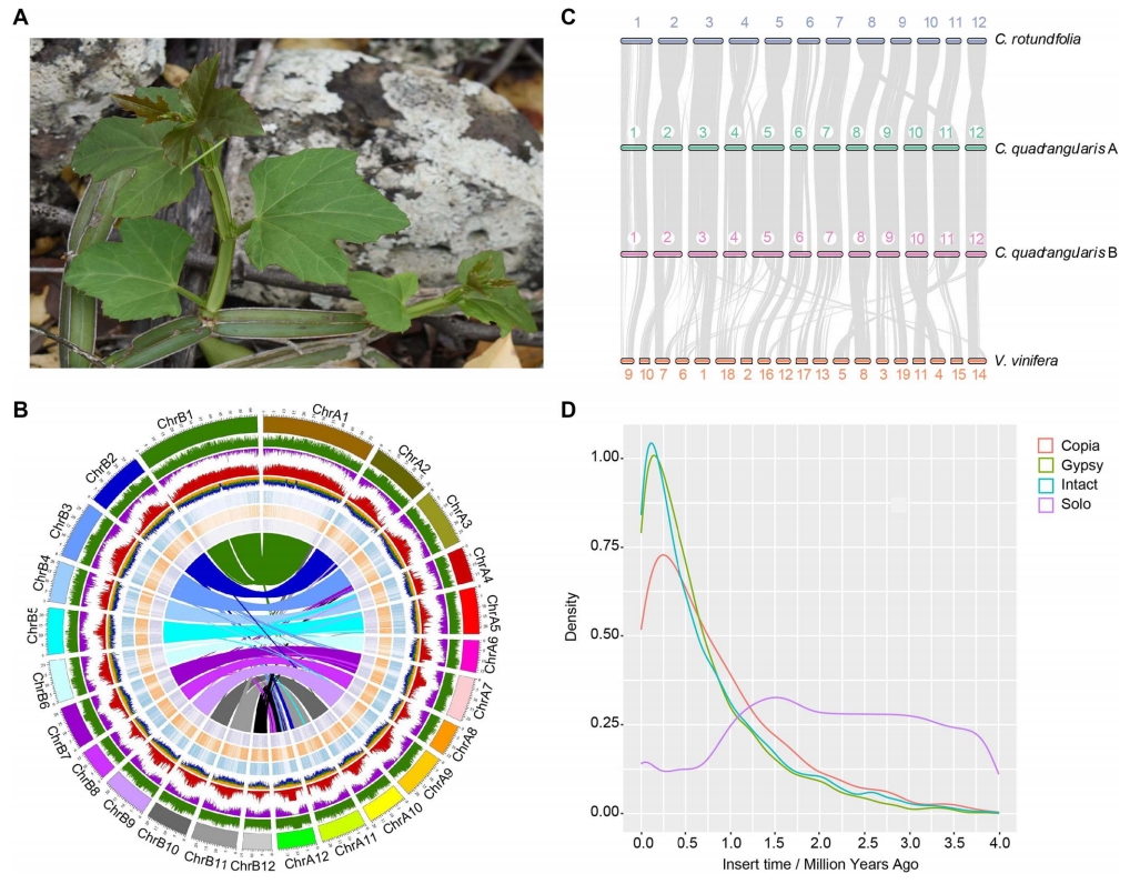 2024年4月,Horticulture Research?在線發(fā)表了中國(guó)科學(xué)院武漢植物園等單位合作完成的題為《The?Cissus quadrangularis?genome reveals its adaptive features in an arid habitat》?的研究論文,主要報(bào)道了方莖白粉藤染色體級(jí)別的基因組組裝結(jié)果,并初步解析了其干旱適應(yīng)性機(jī)制。