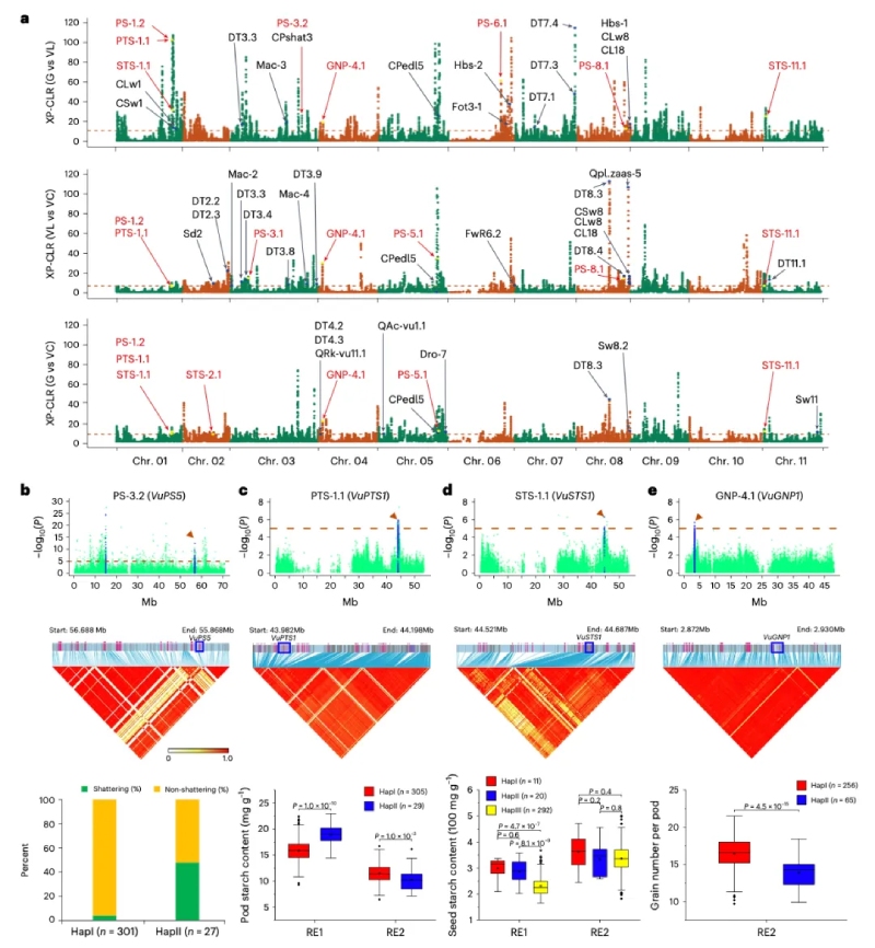 圖4-豇豆馴化與改良的選擇清除和重要性狀GWAS分析