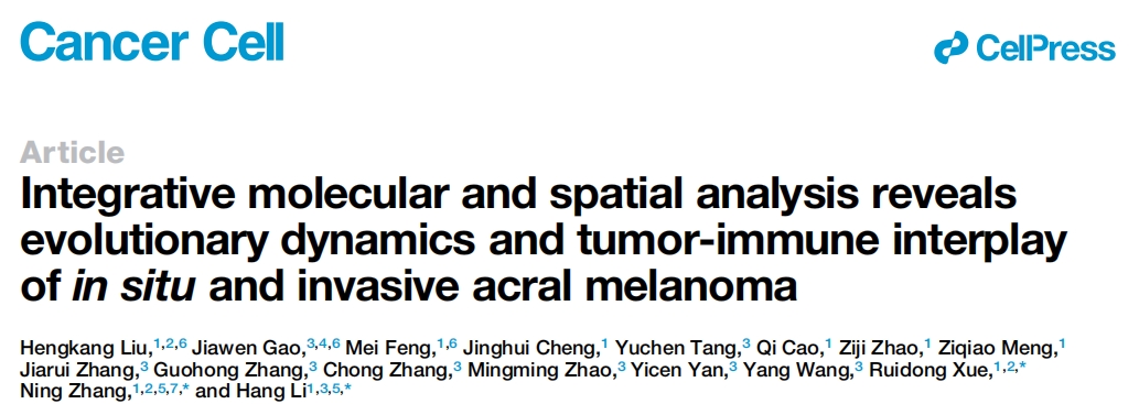 Liu et al., Integrative molecular and spatial analysis reveals evolutionary dynamics and tumor-immune interplay of?in situ?and invasive acral melanoma,?Cancer Cell?(2024), https://doi.org/10.1016/j.ccell.2024.04.012