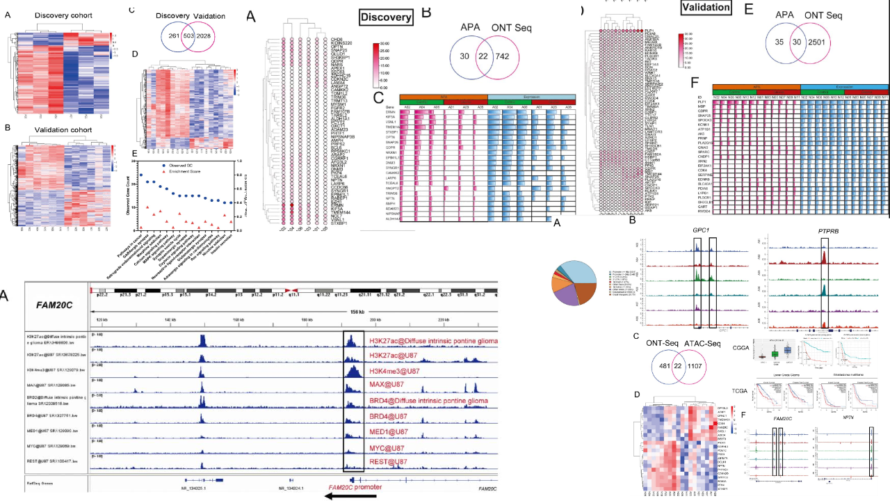 神經膠質瘤是神經系統(tǒng)中最常見的原發(fā)性腫瘤,攻擊力極強,約占所有腦腫瘤的80%,目前主要的癌癥治療方案,包括手術切除、放療和化療,都會導致預后不良和高死亡率,很難對膠質瘤提供理想的治療效果,因此現(xiàn)在迫切需要探索新的有效策略以及膠質瘤治療的潛在治療靶點。長讀長RNA測序技術已應用在包括肝細胞癌和非小細胞肺癌等多種癌癥類型中,ATAC-seq也已經應用于胰腺癌、胃癌和乳腺癌等多種腫瘤研究中。FAM20C是一種可調節(jié)分泌途徑中的各種網(wǎng)絡的分泌蛋白,主要負責礦化激酶,然而越來越多的研究表明,FAM20C?與包括包括乳腺癌、膀胱癌和結直腸癌在內的多種癌癥廣泛相關。