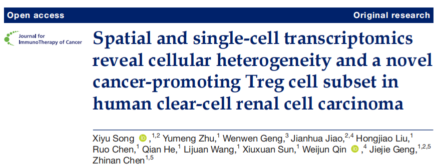 英文標題:Spatial and single-cell transcriptomics reveal cellular heterogeneity and a novel cancer-promoting Treg cell subset in human clear-cell renal cell carcinoma