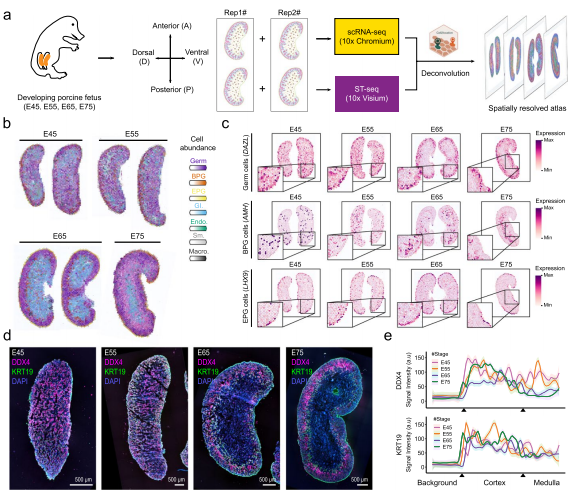 空間轉錄組:豬E45、E55、E65、E75胚胎卵巢,10x Visium;E65胚胎卵巢,BMKMANU S1000