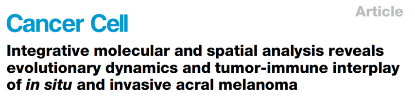 中文題目:整合分子和空間分析揭示原位和侵襲性肢端黑色素瘤的進(jìn)化動(dòng)態(tài)和腫瘤免疫相互作用