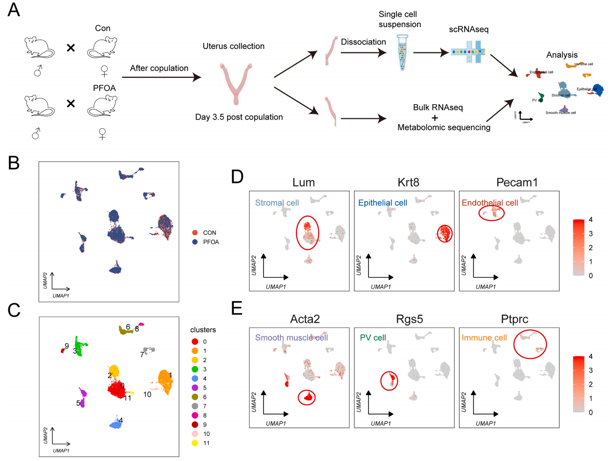 中文題目:單細(xì)胞RNA測(cè)序研究全氟辛酸誘導(dǎo)的小鼠胚胎著床損傷