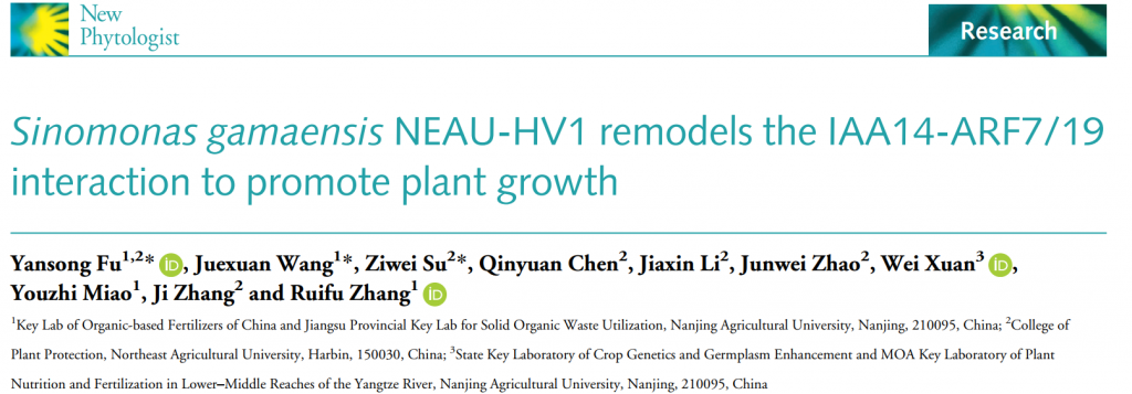 中文標題:《Sinnomaras gamaensis NEAU-HV1通過重塑IAA14-ARF7/19互作促進植物生長》
