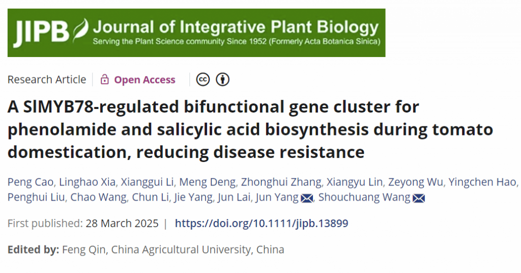 近日,《Journal of Integrative Plant Biology》在線發(fā)表了海南大學南繁學院王守創(chuàng)教授團隊題為“A SlMYB78-regulated bifunctional gene cluster for phenolamide and salicylic acid biosynthesis during tomato domestication, reducing disease resistance”的研究論文。首次揭示植物抗病代謝通路中存在雙功能基因簇(BGC2),其核心基因 SlEPS1在馴化中因負選擇導致功能衰退的分子機制:其編碼的雙功能酶兼具催化抗菌物質(zhì)酚胺與免疫激素水楊酸的雙重功能,為植物代謝與抗病研究提供新路徑。