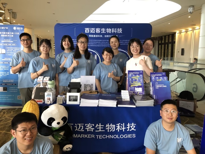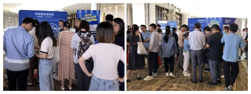 展會(huì)期間百邁客發(fā)揚(yáng)以科研為中心的優(yōu)秀企業(yè)精神,全程設(shè)立展位,展示了全方位微生物組研究相關(guān)組學(xué)產(chǎn)品,包括前沿組學(xué)工具?絕對(duì)定量微生物組學(xué)測(cè)序,高數(shù)據(jù)量全長(zhǎng)多樣性研究,?長(zhǎng)度長(zhǎng)宏基因組學(xué),以及全方位探討生物學(xué)問(wèn)題的?動(dòng)植物-微生物互作多組學(xué)聯(lián)合分析應(yīng)用產(chǎn)品,與前來(lái)參會(huì)的研究學(xué)者熱烈討論了地質(zhì)微生物組學(xué)現(xiàn)有研究問(wèn)題與發(fā)展前景,吸引了大量?jī)?yōu)秀學(xué)者駐留探討。展位現(xiàn)場(chǎng)火爆,大家對(duì)不同的產(chǎn)品提出了不同的問(wèn)題,現(xiàn)場(chǎng)的工作人員都做了詳細(xì)的解答和交流。