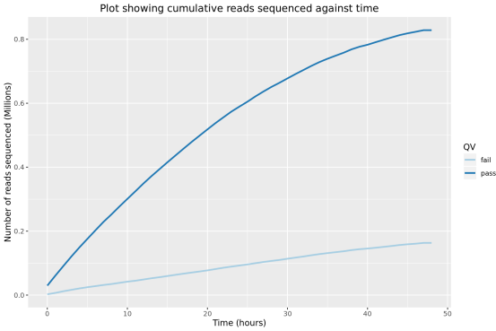 此部分內(nèi)容統(tǒng)計(jì)了隨測(cè)序時(shí)間變化,測(cè)序累計(jì)序列個(gè)數(shù),堿基個(gè)數(shù),測(cè)序速度和有效工作納米孔數(shù)等指標(biāo)的變化情況。