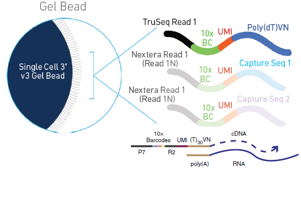 10 X Genomics單細胞轉(zhuǎn)錄組測序平臺利用微流控、油滴包裹和baecode標(biāo)記等技術(shù)來實現(xiàn)高通量的細胞捕獲技術(shù),能夠一次性分離、并標(biāo)記500–10000個單細胞,從而獲得每個細胞的3’端的轉(zhuǎn)錄組信息。具有細胞通量高、建庫成本低、捕獲周期短等優(yōu)勢。該技術(shù)主要用于細胞分型和標(biāo)記因子的鑒定,從而實現(xiàn)對細胞群體的劃分與細胞群體間基因表達差異的檢測,此外該技術(shù)還可以預(yù)測細胞分化與研究發(fā)育軌跡,在當(dāng)下疾病、免疫、腫瘤領(lǐng)域以及組織、器官、發(fā)育研究中發(fā)揮越來越重要的作用。