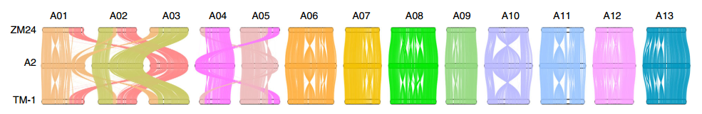 充分注釋了高質(zhì)量野生四倍體花生基因組,揭示了花生亞基因組單系起源和遺傳進(jìn)化模型,表明了野生和栽培四倍體花生亞基因組發(fā)生了不對稱進(jìn)化;此外,野生花生中存在的獨特等位基因可以改善栽培花生的抗性和莢果大小等形狀,為研究多倍體基因組進(jìn)化、作物馴化和基因組輔助花生生產(chǎn)改良提供獨特的價值。