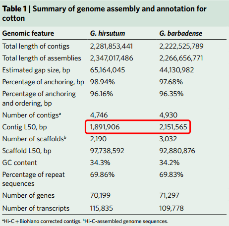 圖1 陸地棉和海島棉組裝注釋結(jié)果